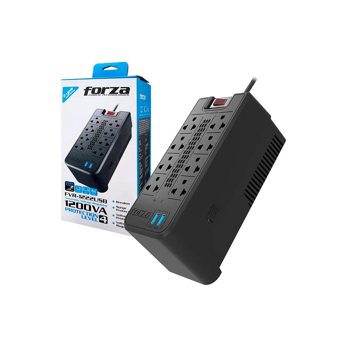 ESTABILIZADOR FORZA FVR-1222 USB 1200VA/600W 8 TOMAS BLACK